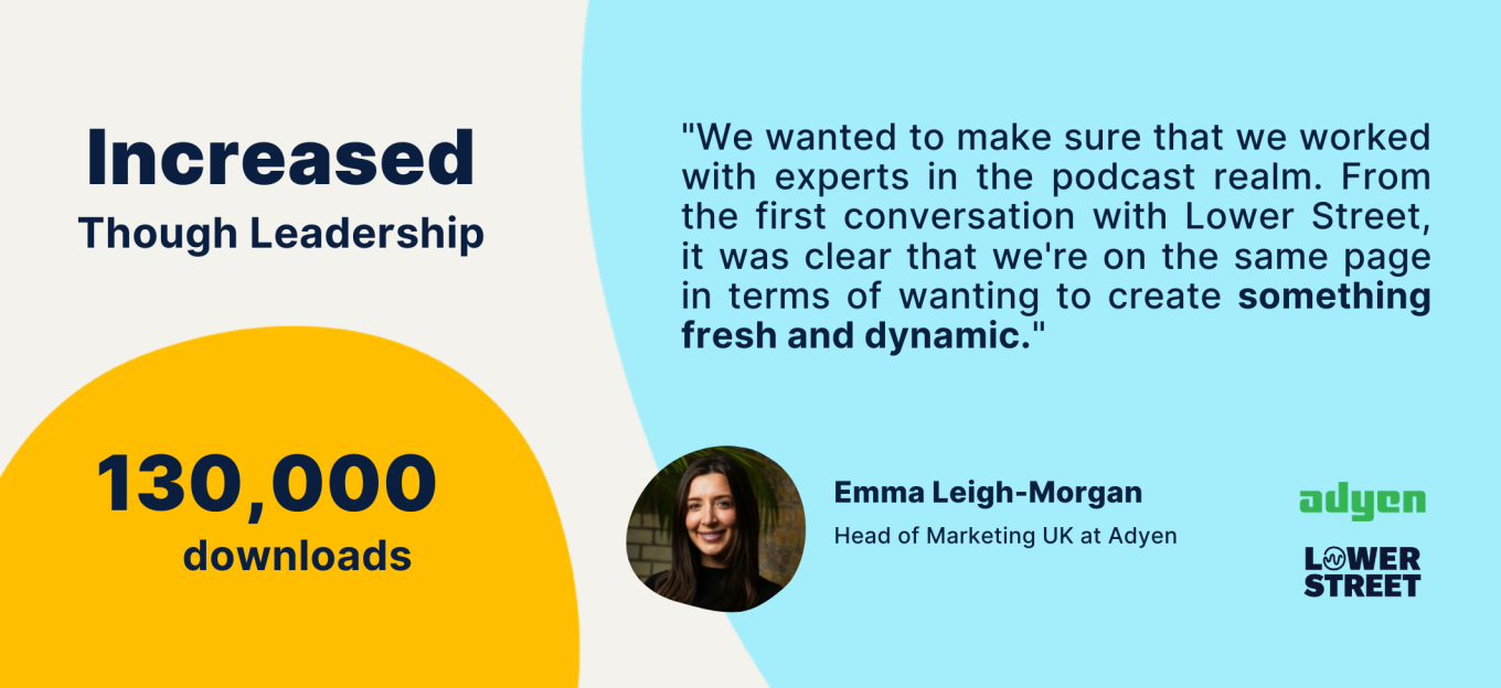 And that’s when Adyen found us at Lower Street. Together we looked at the themes of the retail report - and the wider discussions it could spark. A podcast was the perfect medium to bring the report to life. It allowed Adyen’s expert voice and insight to reach more of their target audience.