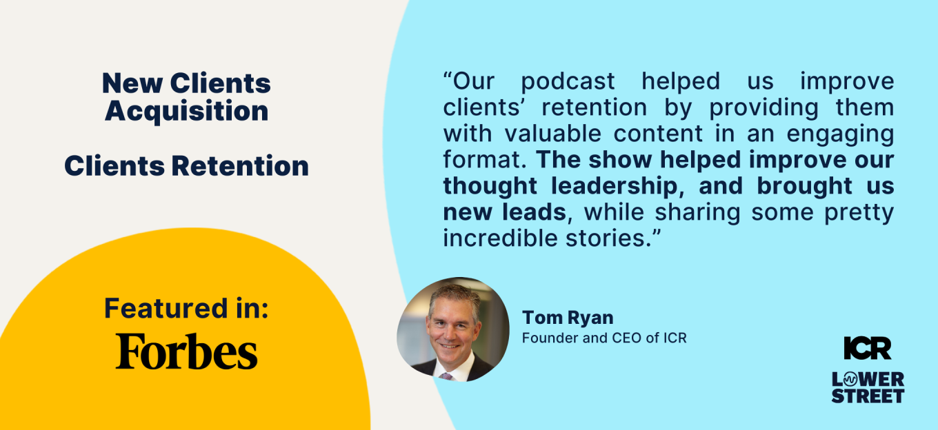 Podcasting was the perfect solution. Then it was just about finding the right production agency to partner with. Lower Street saw the great potential ICR faced, they teamed up to build ICR’s authority through podcasting.