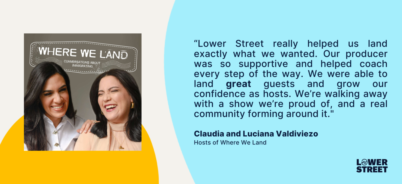 Claudia and Luciana came to Lower Street with a great vision — and they knew exactly where they needed backup. Where We Land was a strong concept, but they wanted help building a solid technical foundation. They needed to source great guests, deliver a polished listening experience to attract and retain audiences, launch with momentum, and grow strategically.